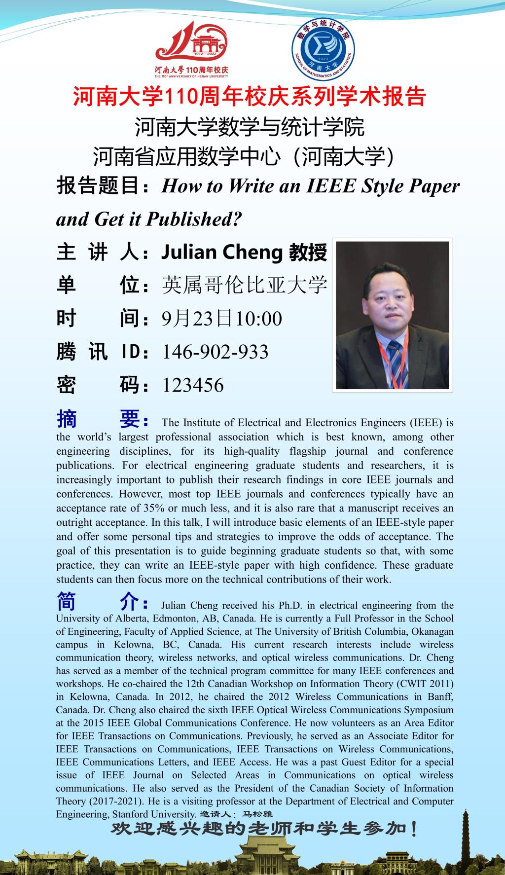 校庆学术活动:How to Write an IEEE Style Paper and Get it Published(时间9.23)